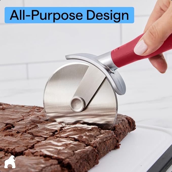 GORILLA GRIP BPA-Free Large Pizza Cutter Wheel, 9 Inch, Sharp Stainless Steel Blade, Slip Resistant Handle with Thumb Guard Protection, Slice Thick or Thin Pizzas, Pie, Pastries in Seconds, Red