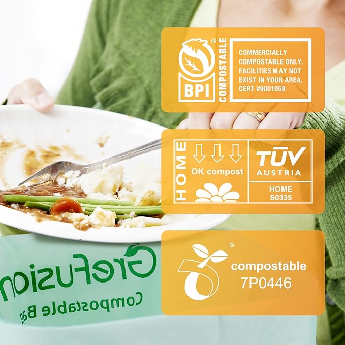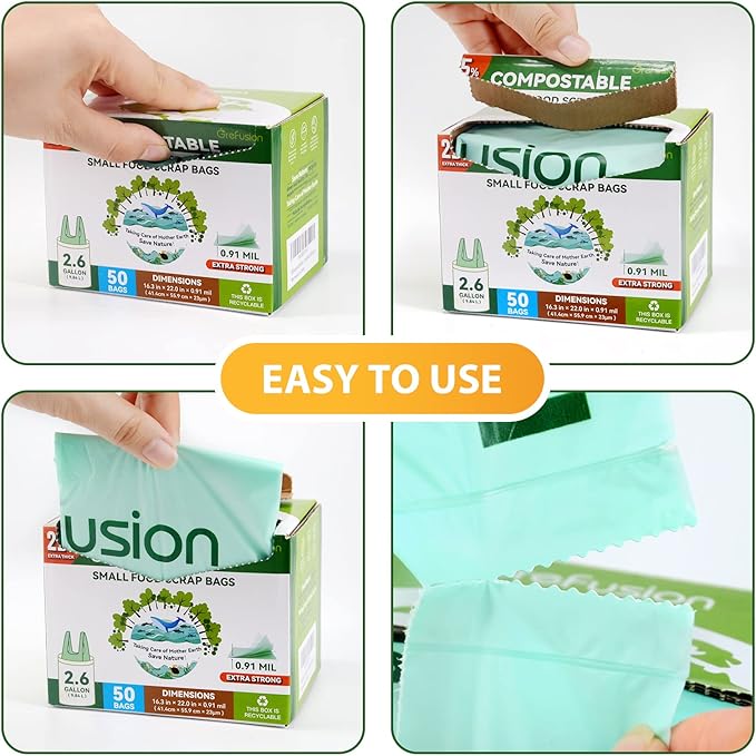 Compostable Trash Bags with handle-tie,Garbage Bags, 2.6 Gallon,Food Waste Bags,Small trash bags for compost bin kitchen,Certified by BPI and OK Compost (2.6G-50count)