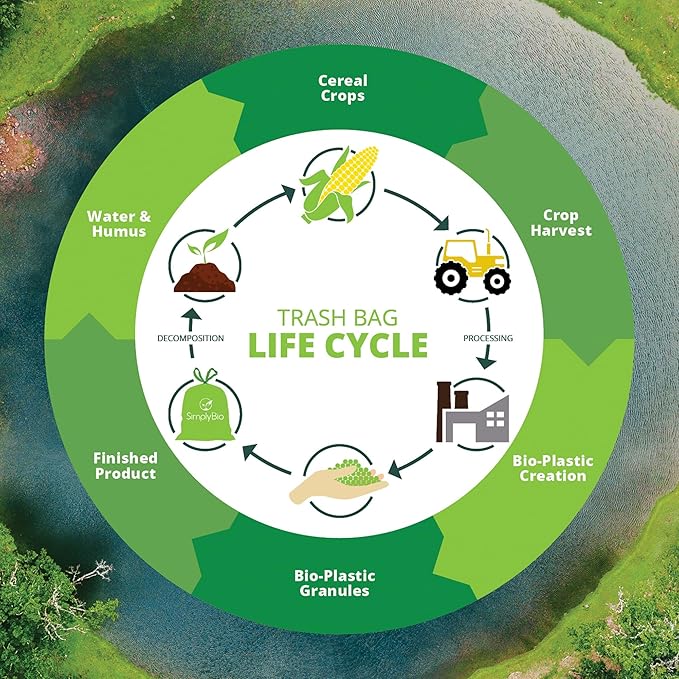 - Convenient Size and Packaging: These Simply Bio 13-gallon compostable trash bags, equivalent to 49.2 liters, are 1 mil thick. Each roll contains 30 bags, equipped with a drawstring for easy closure. Sized at Width 23.7 in. x Height 29.4 in.