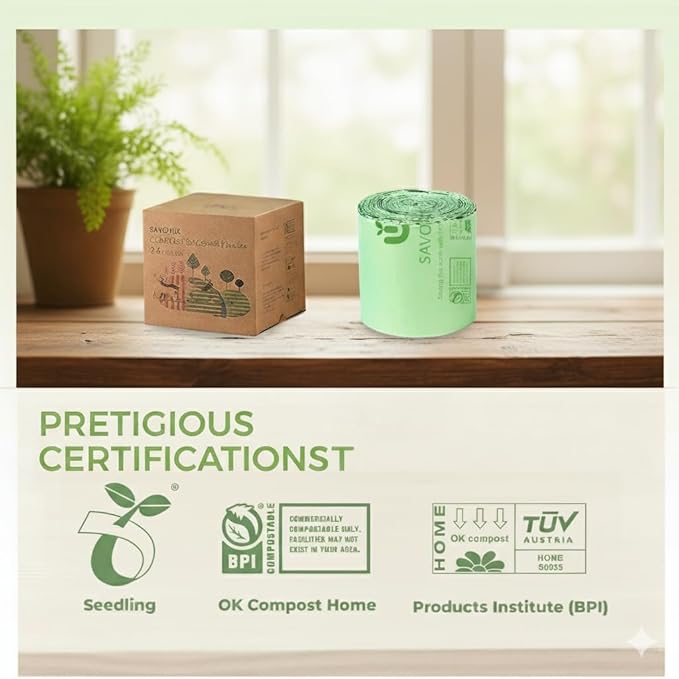 - šš¬š¬% šš¢š š£š¢š¦š§šššš ššš„š§šššššš§šš¦: Our Compostable bags Certified by BPI and OK HOME Compost and Seedling from TUV, meeting both the US ASTM D6400 and EU EN 13432 standard. OK Compost Home certification for 100% Composting IN HOME COMPOSTING facilities.