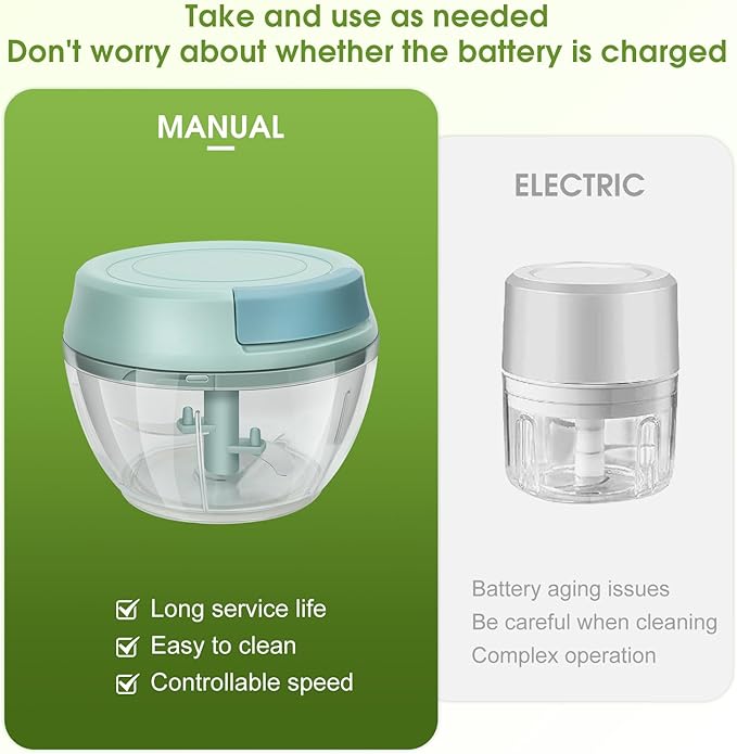 - Easy to Clean - The detachable design makes this food chooper easy to clean.You can rinse directly with water.And we recommended to rinse this food chooper immediately after use to avoid food staying for too long and producing odors or sticking.