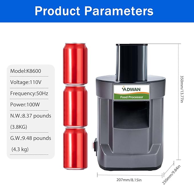 - HIGH QUALITY: This commercial vegetable cutter is equipped with stainless steel blades, 100W pure copper motor not only runs quietly, but also has excellent heat dissipation performance, stable and safe to use, and can work continuously for up to 20-30 minutes! (This food processor can not efficiently handle soft vegetables and fruits, such as tomatoes, beans, spinach, etc.).