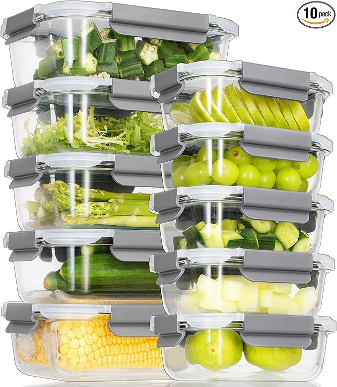 10 Pack Glass Meal Prep Containers, Glass Food Storage Containers with Lids Airtight, Storage Container Set with Lid for Food, Bpa-free, Leak-proof, Microwave Oven Freezer Dishwasher Safe