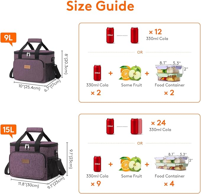 - Convenient & Portable: The lid of this cooler lunch bag can be opened up widely with strong two-way zippers, which means you can put your lunch container into the bag and take out of the bag vertically. Prevent liquids from leaking out of the container and soiling inside the bag. Tough handles and shoulder strap allows you to carry it easily. Moreover, the front and side extra pocket can hold small items like keys and earbuds