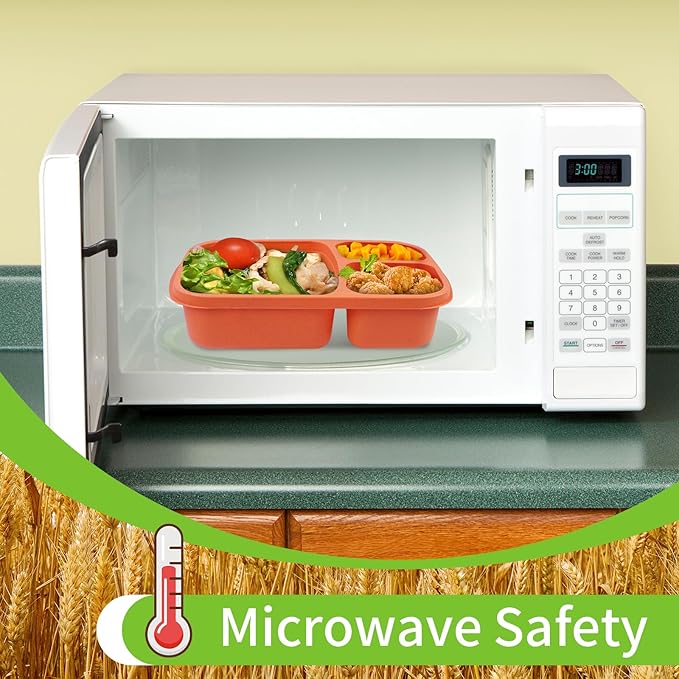 - 4 Pack Bento Lunch Box with Cutlery Set 3 Compartment Food Storage Containers Wheat Straw Meal Prep Lunch Box Plastic Food Storage Containers, Microwave and Dishwasher Safe