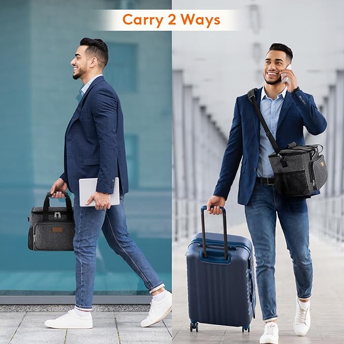 - Convenient & Portable: The lid of this cooler lunch bag can be opened up widely with strong two-way zippers, which means you can put your lunch container into the bag and take out of the bag vertically. Prevent liquids from leaking out of the container and soiling inside the bag. Tough handles and shoulder strap allows you to carry it easily. Moreover, the front and side extra pocket can hold small items like keys and earbuds