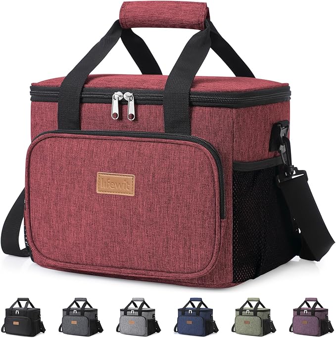 Lifewit Large Lunch Bag Insulated Lunch Box Soft Cooler Cooling Tote for Adult Men Women, Burgundy 24-Can (15L)