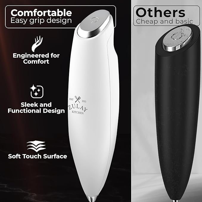 - PROVEN AND TRUSTED QUALITY: Made with high-quality materials, this coffee frother handheld works on all types of milk—whole, almond, soy, cashew, or cream. Backed by the Zulay Lifetime Guarantee, it won’t rust or break.