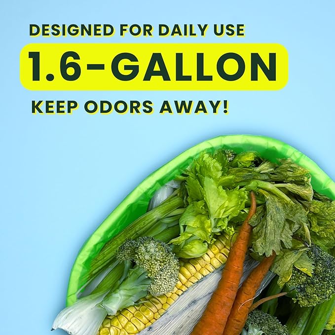 1.6 Gallon Compostable Food Scrap Bags Handle Tie for Kitchen Countertop Bin, 6 Liter Small Compost Bags, 100 Count (Pack of 2), BPI Certified and Meet The ASTM D6400 Standard