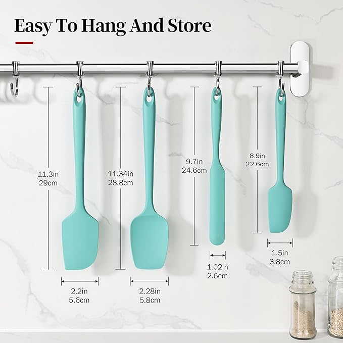 - [Seamless Design & Dishwasher Safe & Easy Storage] This baking spatula set's smooth surface keeps food from sticking, so messy ingredients like caramel or melted cheese wash off easily. Made as semless construction, there are no hidden spots for food to get stuck. It's tough enough for daily dishwasher use, and the handy loop makes storage simple and keeps your kitchen tidy. Whether you're scraping peanut butter or mixing batter, cleanup takes seconds—just rinse and go.