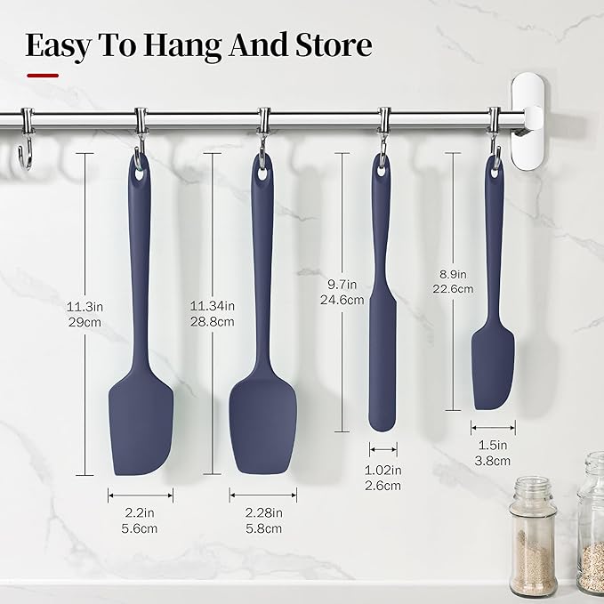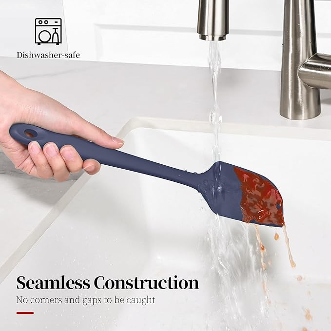 - [Seamless Design & Dishwasher Safe & Easy Storage] This baking spatula set's smooth surface keeps food from sticking, so messy ingredients like caramel or melted cheese wash off easily. Made as semless construction, there are no hidden spots for food to get stuck. It's tough enough for daily dishwasher use, and the handy loop makes storage simple and keeps your kitchen tidy. Whether you're scraping peanut butter or mixing batter, cleanup takes seconds—just rinse and go.