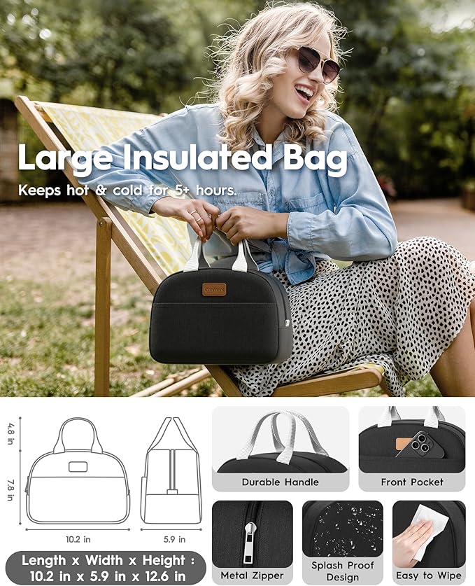 - 【Superior Thermal Insulation】Insulated lunch bag lining uses thickened aluminum foil thermo material, effectively maintaining food temperature for extended periods. The outer layer is made of water-repellent canvas, providing excellent stain resistance, waterproofing, and easy cleaning.