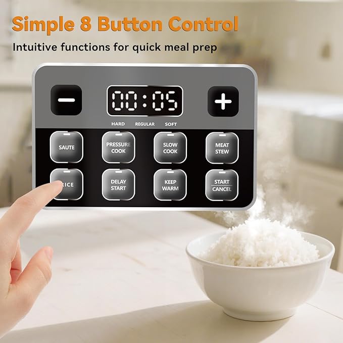 - Safe and User-Friendly Design: Engineered with your safety in mind, it features multiple safety mechanisms, including overheat protection and a secure lid-locking system. The intuitive control panel with clear settings makes it simple for anyone to use, from beginners to experienced cooks.